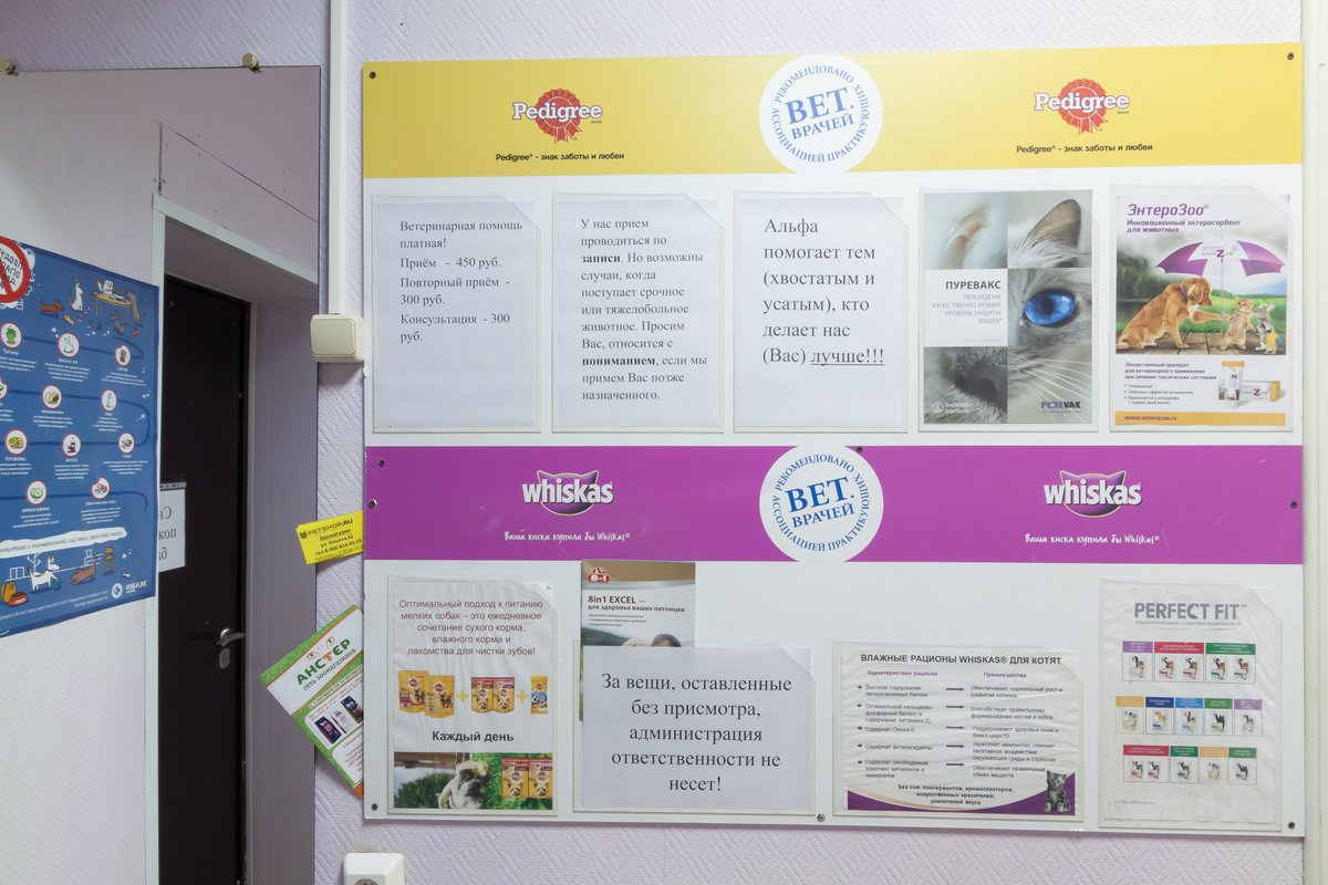 В ветеринарном кабинете Альфа мы были два раза. Первый раз нам ставили прививку, а второй раз просто ходили на консультацию. В целом все хорошо, прививку поставили нормально, а в этот раз обозначили лечение, что необходимо делать, подготовили нам нашу лечащую карту, ну и мы купили сразу капельки для глаз. Даже дали нам конфетки. Сервис хороший, отнеслись к нам, как к клиенту. В ветеринарном кабинете тихо, спокойно, отвечают на все вопросы, с этим сложности не было.